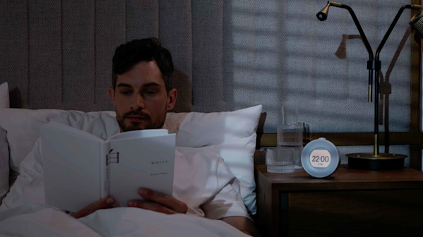 Another simple way to lower the amount of blue light you're exposed to, right before bed, and to eliminate the distractions of digital devices is to stop using your smartphone as an alarm and replace it with a mindful alarm clock, like Mudita Harmony.
