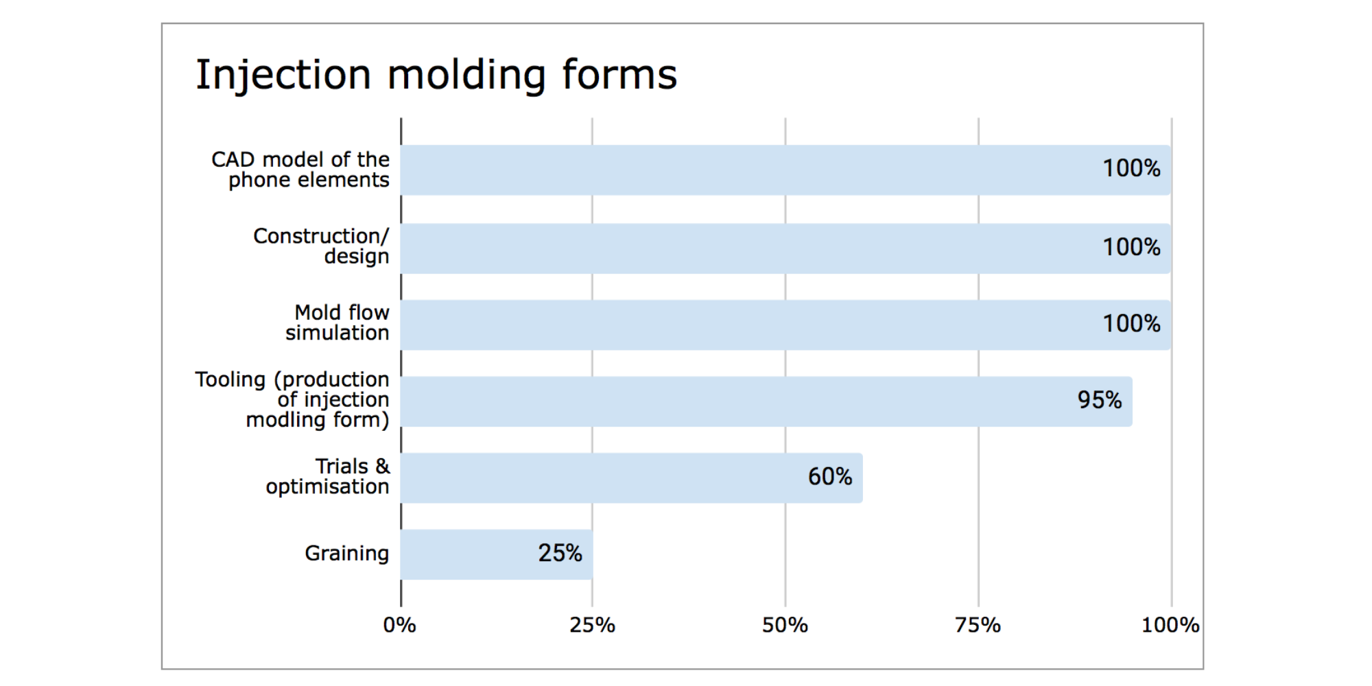 The most complicated one is the form of the body that connects the lid with the front of the phone. We insisted on using here a complex technique that produces one element created of two different materials. It requires the most attention and we will use the additional time to master the process of injecting two materials into one form.