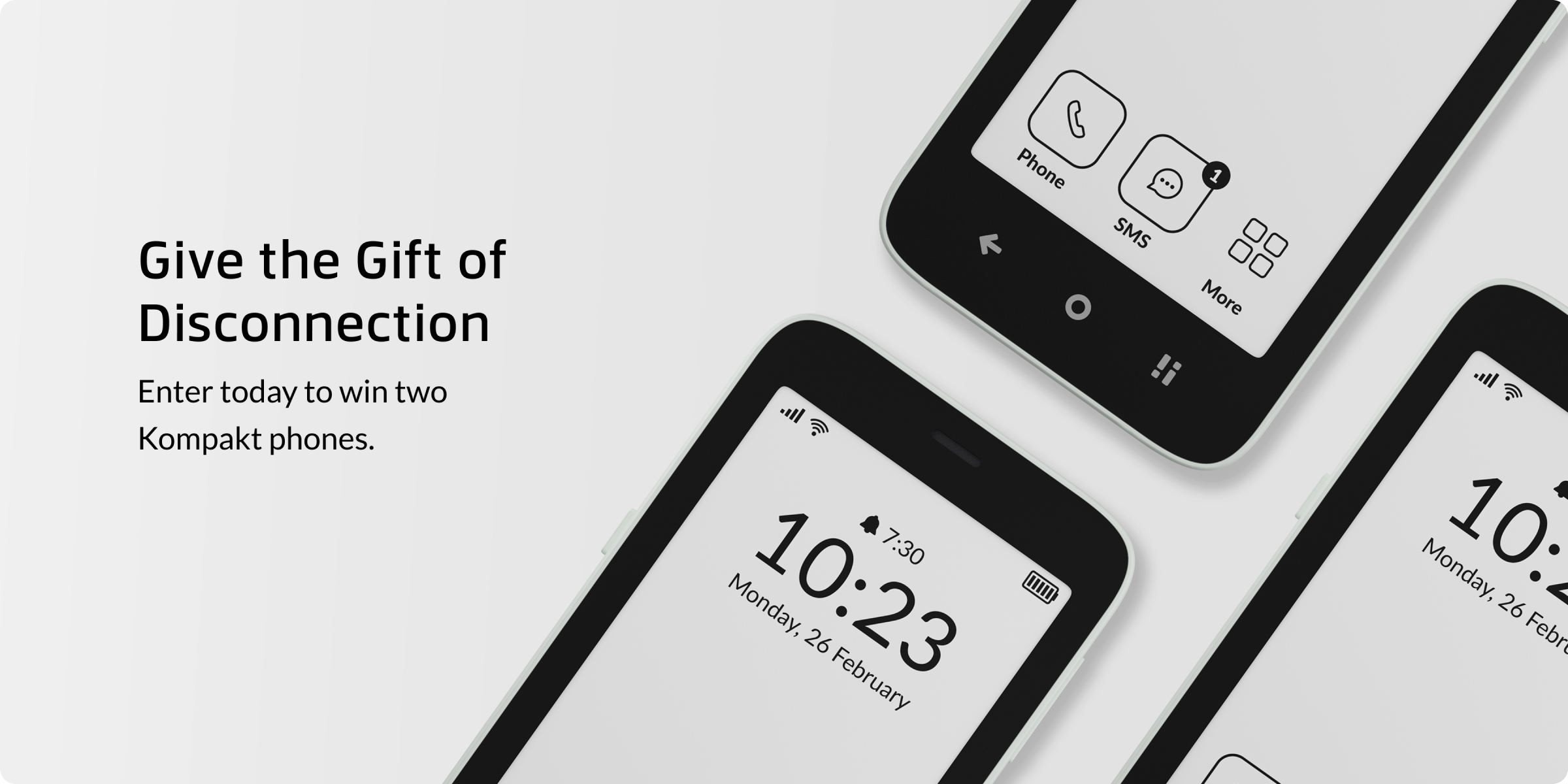 Join our Give the Gift of Disconnection Contest for a chance to win two Mudita Kompakt phones – one to keep, and one to gift to someone special. We’ll select five winning entries that best capture the spirit of disconnection! Because the best things we can share aren’t things at all – they’re peace in a noisy world, clarity in the chaos, and time with the ones who matter most.