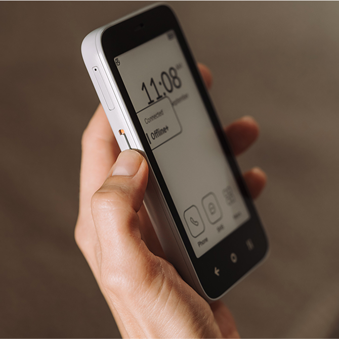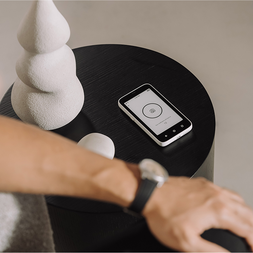 Stay connected while being present. With only the essentials and a clean, distraction-free interface, powered by a custom operating system, Mudita Kompakt helps you focus on what truly matters without unnecessary interruptions or clutter.