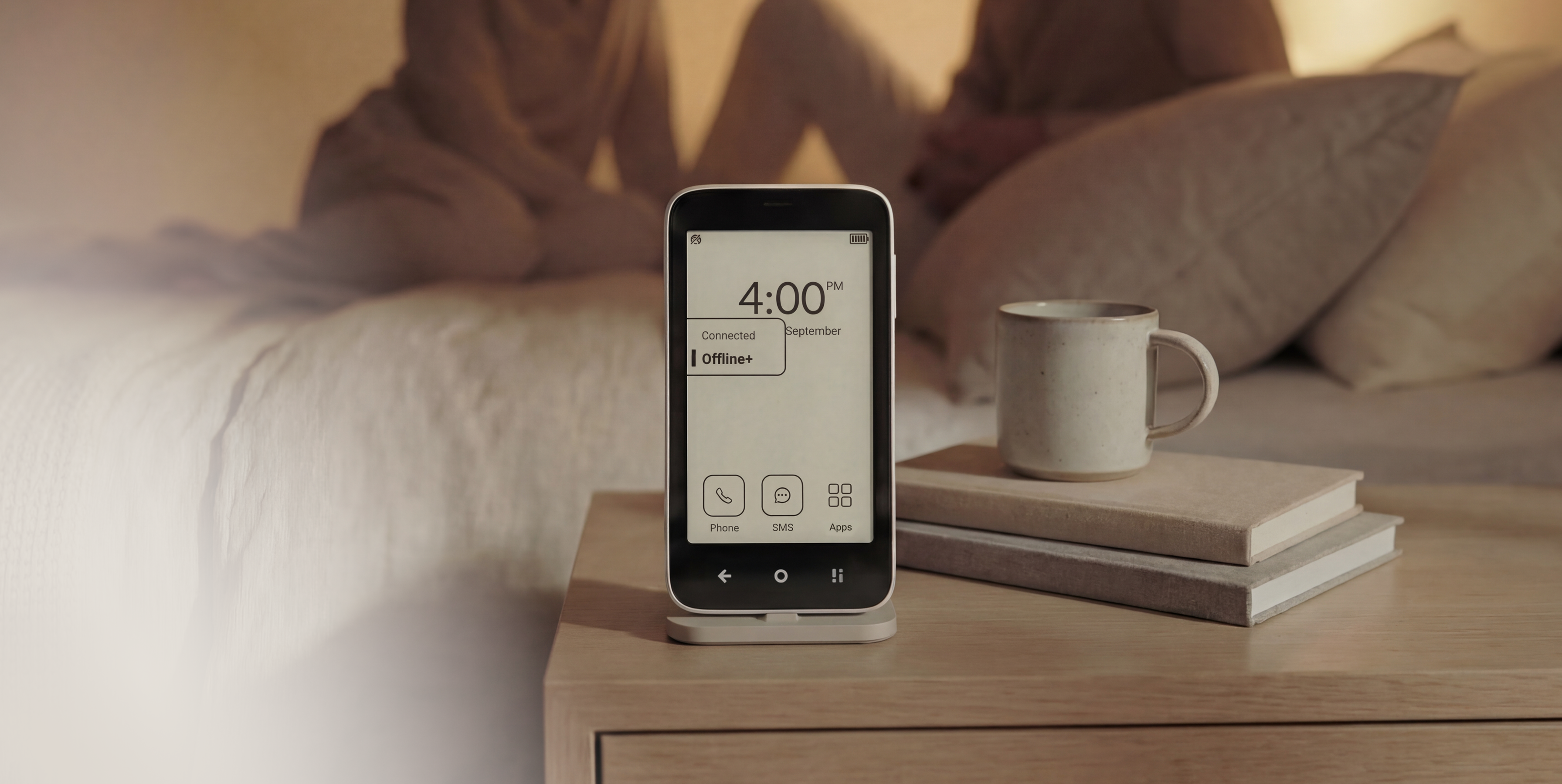Poznaj Mudita Kompakt - minimalistyczny telefon z ekranem E Ink®, stworzony, by przywrócić równowagę w świecie pełnym rozproszeń.