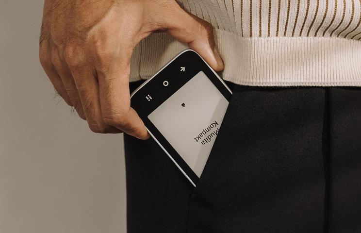 Poznaj Mudita Kompakt - minimalistyczny telefon z ekranem E Ink®, stworzony, by przywrócić równowagę w świecie pełnym rozproszeń.