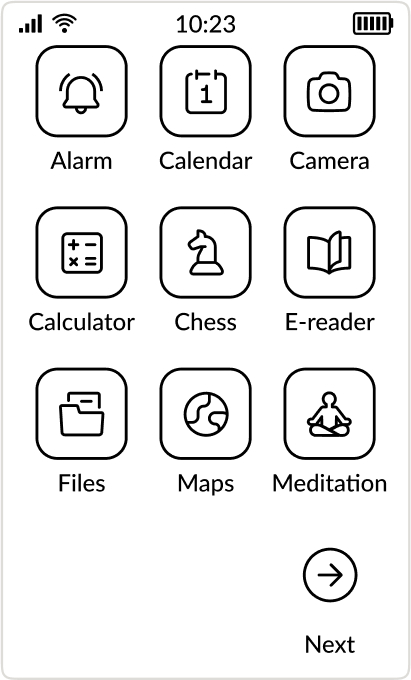 Mudita Kompakt is a tool designed to help you live more intentionally. Its features are carefully selected to provide essential connectivity and useful tools, enabling you to step away from digital overload and cultivate a more present existence.