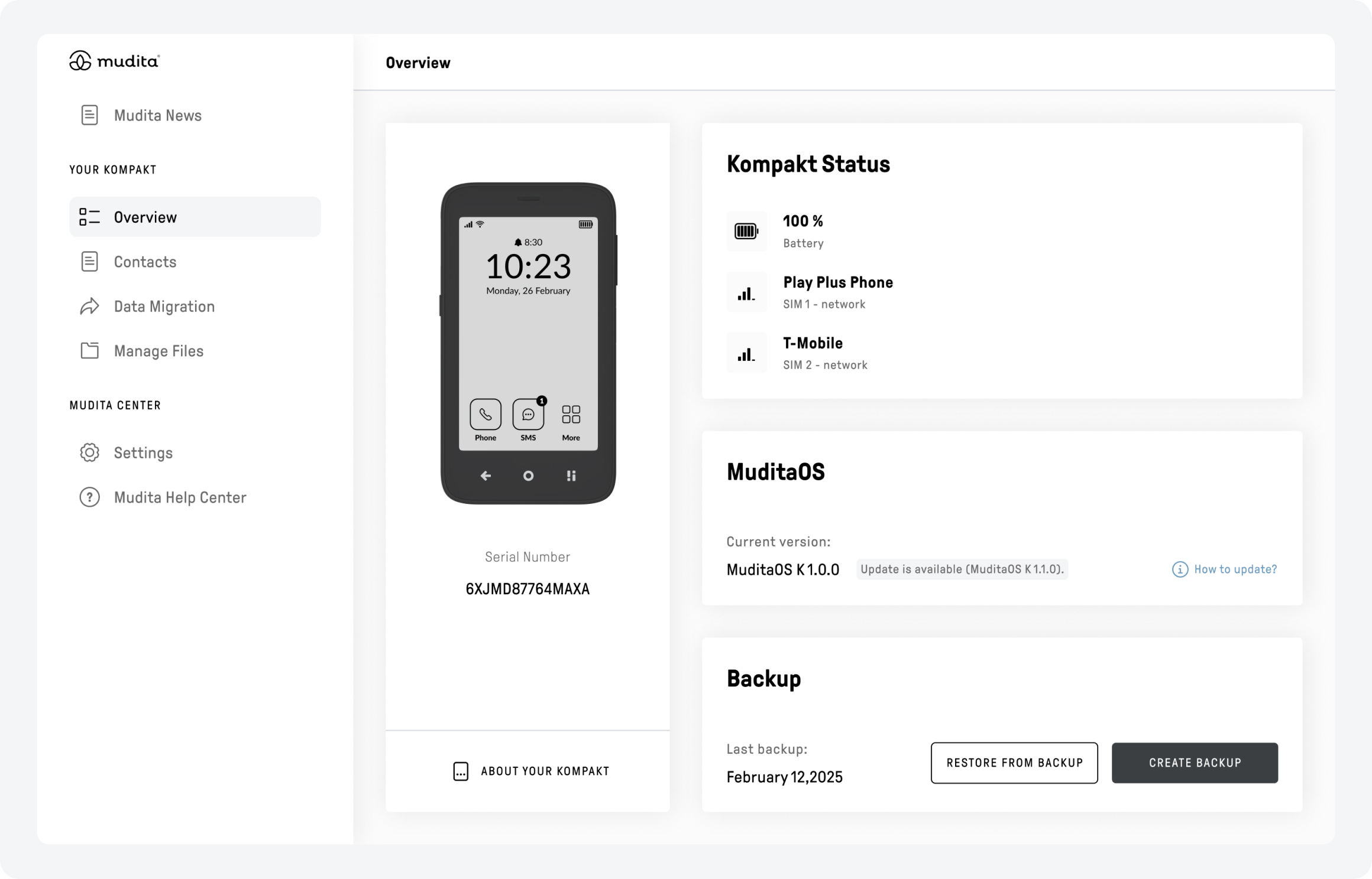 Mudita Center is open-source, providing transparency into how your data is handled. Check us out on [GitHub].