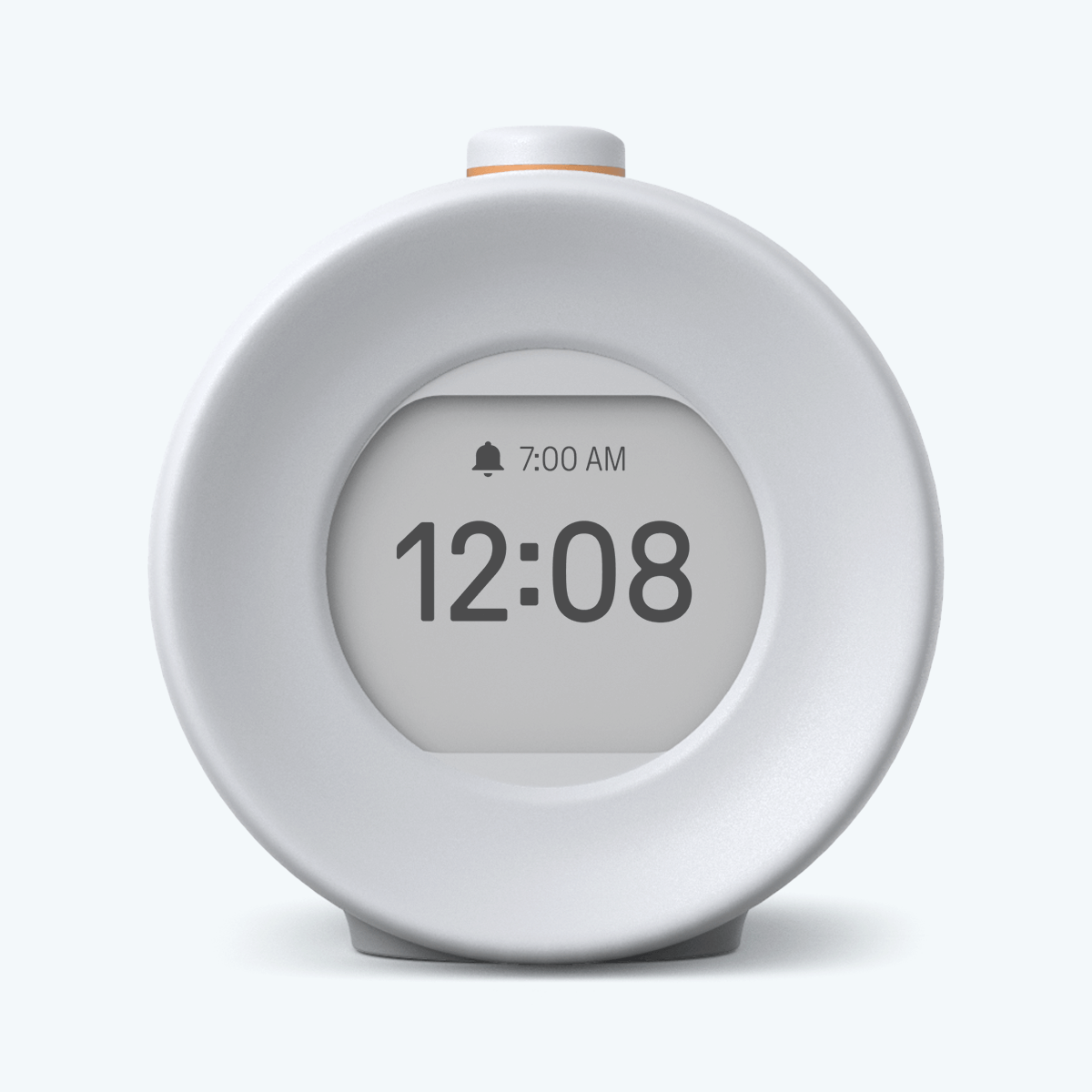 Minimalist alarm clock, with a versatile timer function, light pre-wakeup feature and carefully selected acoustic tones and soothing nature sounds gently rouse you from sleep.