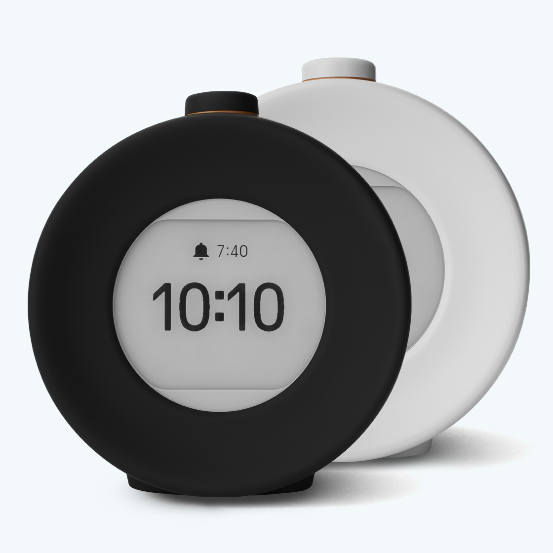Multifunctional alarm clock with E Ink screen.